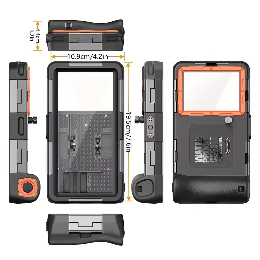 Esta funda impermeable de calidad profesional mantiene su teléfono seguro y funcional en las profundidades, lo que le permite tomar fotografías y videos impresionantes debajo de la superficie.